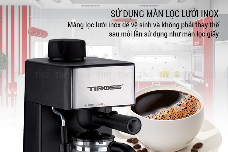 Mua tại TiktokEspresso Tiross TS621 Một thiết kế hiện đại sang trọng là sản phẩm của thương hiệu Tiross - Ba Lan, máy pha cà phê Espresso Tiross TS621đáp ứng các tiêu chuẩn nghiêm ngặt của Châu Âu về chất lượng. Máy có thiết kế đơn giản, dễ sử dụng và có các chức năng pha espresso, cà phê thường và cappuccino.