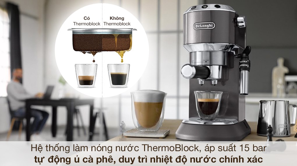 Công nghệ Tehermoblock giúp gia nhiệt chuẩn và làm nở hạt cà phê trước khi chiết xuất