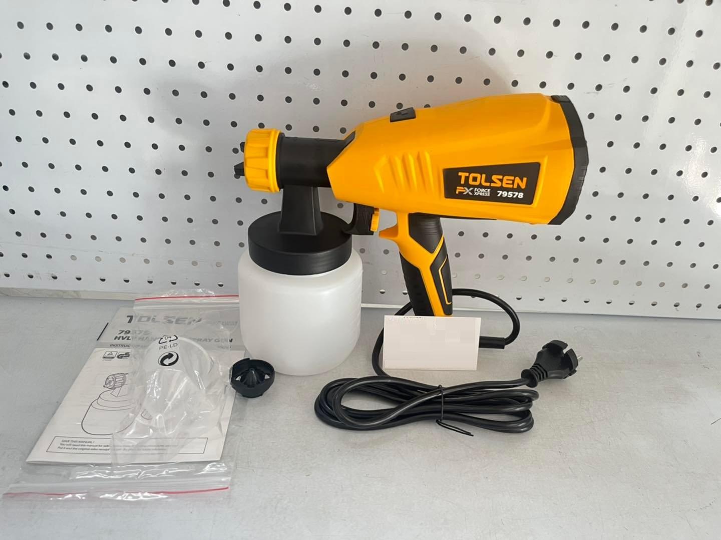Súng phun sơn dùng điện TOLSEN 79578 được thiết kế khá nhỏ gọn, có tính linh hoạt cao nên dễ dàng mang theo khi cần thiết. với thiết kế tay cầm được bọc một lớp