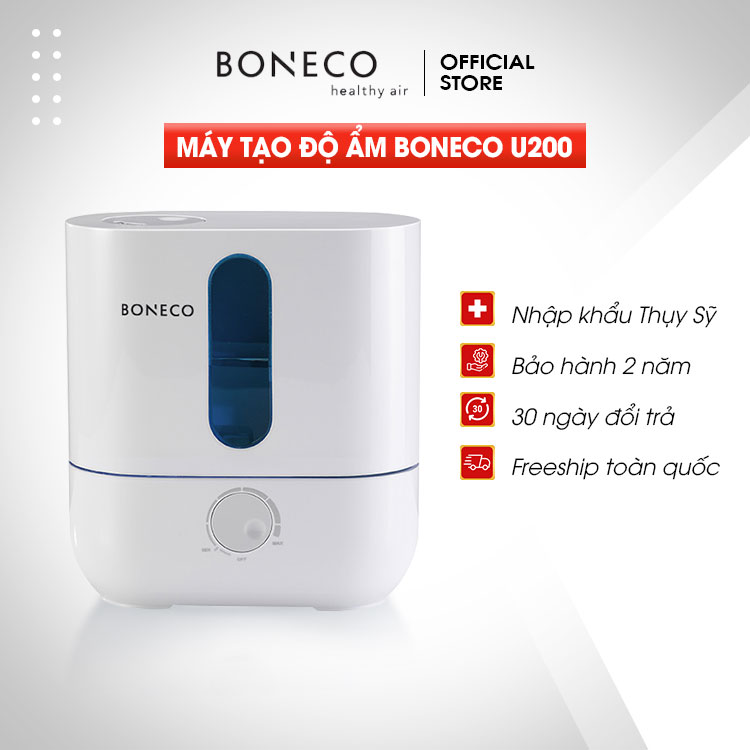 Máy tạo ẩm Boneco U200 sử dụng công nghệ tạo ẩm Ultrasonic giúp chuyển đổi nước thành hơi ẩm có kích thước siêu nhỏ (nano), siêu nhẹ, sau đó đưa vào không khí bằng hệ thống quạt. Chính vì vậy lắng động hơi nước, không gây hại cho thiết bị đồ dùng trong phòng.