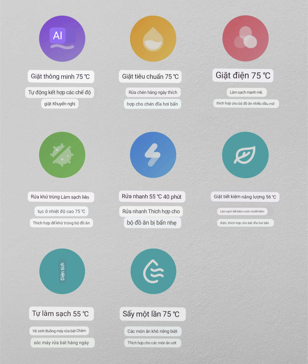 Máy rửa bát này hỗ trợ rửa ở nhiệt độ cao 75 ° C, với tỷ lệ khử trùng và khử trùng là 99,99% ; sấy tuần hoàn khí nóng PTC với tốc độ sấy nhanh; thông gió và sấy khô tuần hoàn chủ động, tỷ lệ diệt khuẩn bằng tia cực tím UV đạt 99,9%; hỗ trợ phát hiện chất lượng nước quang học, với thuật toán thông minh AI, 10 giây để xác định mức độ bẩn, chương trình kết hợp tự động; công suất lớn, hiệu suất mạnh, tiết kiệm nước hơn so với rửa tay; tiêu thụ nước ít hơn 85% so với rửa tay và chỉ 0,53 kW điện tiêu thụ cho một lần rửa.