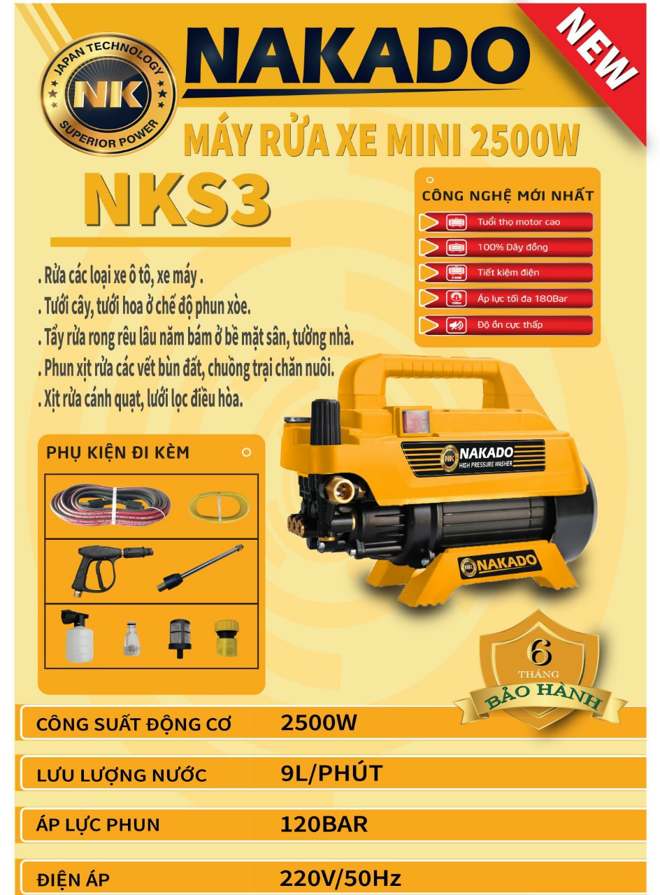 MÁY RỬA XE NAKADO -2500W- NKS3