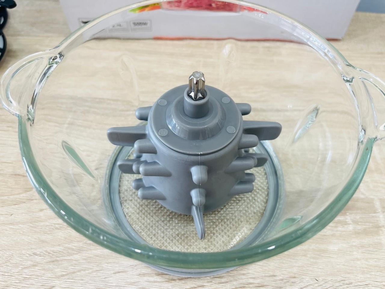- Dung tích cối xay lên đến 2.1L có thể xay được lượng thực phẩm lớn, tương đương với 500g thịt cùng một lúc, đủ thực phẩm cho 4-6 người.