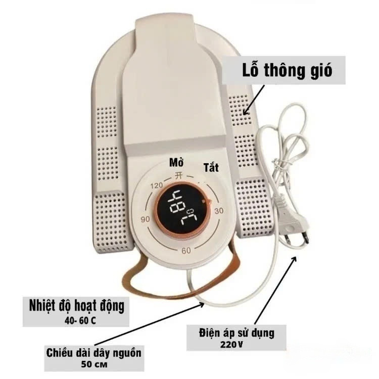 • Sấy khô giày, dép nhanh chóng, không lo ẩm mốc, hôi hám
