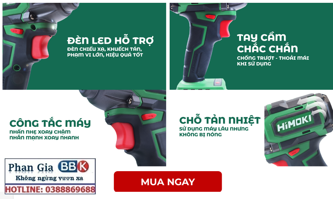 • Chức năng máy siết mở Bulong himoki, Ốc máy, Ốc xe, Khoan, Bắt vít, Bắn tô