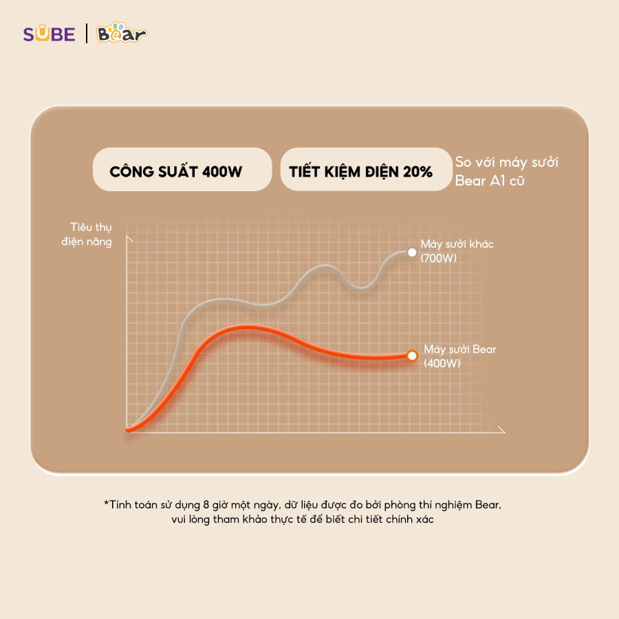 - Công suất 400W tiết kiệm điện 20% so với máy sưởi Bear A1 cũ