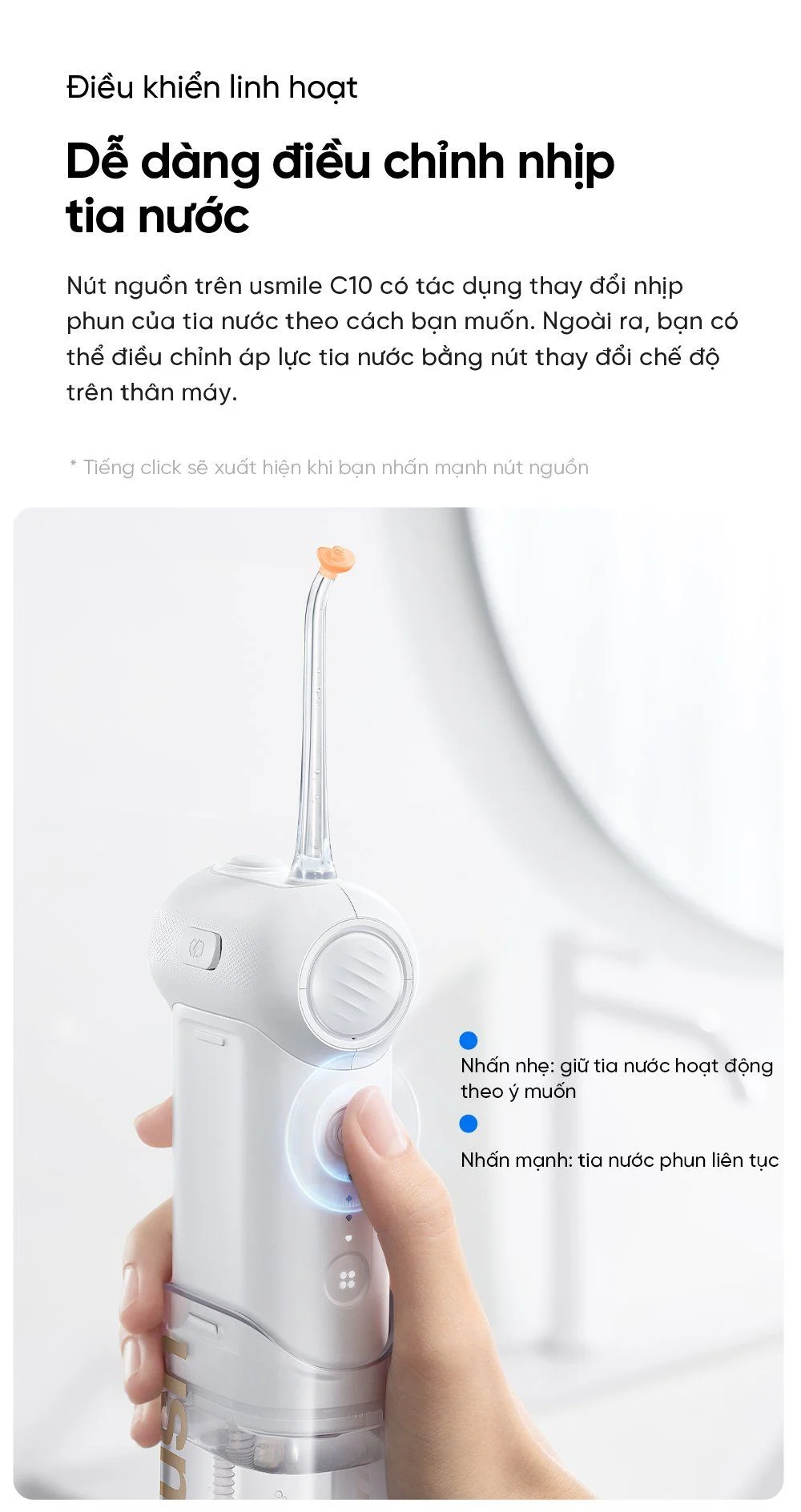Với usmile C10, bạn không chỉ có được sự sạch sẽ và sức khỏe cho răng miệng mà còn trải nghiệm sự tiện lợi và thoải mái từ việc chăm sóc răng miệng hàng ngày.