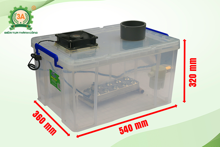 Máy tạo ẩm nhà yến 3A260W là sản phẩm do Hãng Máy 3A nghiên cứu, chế tạo và phân phối. Máy với tính năng phun sương tạo ẩm dạng khói, hạt sương có độ mịn cao, giúp đảm bảo độ ẩm ổn định và nhiệt độ phù hợp cho chim yến phát triển sinh sống khỏe mạnh nhất. Máy tạo ẩm nhà yến 3A260W có nhiều ưu điểm nổi bật hơn các sản phẩm cùng tính năng trên thị trường như: Hiện nay có nhiều đơn vị cung cấp máy phun sương nhà yến, tuy nhiên không phải sản phẩm nào cũng đáp ứng được mong đợi của khách hàng. Chiếc máy tạo ẩm nhà yến 3A260W do hãng 3A sản xuất được nhiều khách hàng lựa chọn bởi có nhiều ưu điểm vượt trội hơn hẳn, đó là: Tạo sương bằng sóng siêu âm Máy tạo ẩm nhà yến 3A260W được trang bị một board mạch điện tử. Sử dụng dòng điện để tạo ra sóng siêu âm tách nước thành các hạt nhỏ li ti. Khi nước tiếp xúc với sóng siêu âm sẽ bị phân tách thành hơi nước dạng sương mù, sau đó sẽ được đẩy ra môi trường bên ngoài. Điều này giúp cho độ ẩm trong nhà yến luôn được ổn định theo mức mong muốn của người nuôi yến. Máy hoạt động bằng sóng siêu âm nên hầu như không gây ra tiếng ồn, vận hành êm, không làm ảnh hưởng tới chim yến, hiệu suất cao, giúp tiết kiệm điện năng. Vỉ tạo ẩm siêu âm 10 mắt Máy tạo ẩm nhà yến 3A260W được trang bị vỉ tạo ẩm siêu âm 10 mắt, giúp chuyển đổi dòng điện xoay chiều có tần số cực cao thành sóng siêu âm rồi phát ra bên ngoài bằng mắt tạo ẩm, công suất vỉ lên tới 250w. Do vậy, máy có thể tạo độ ẩm hiệu quả lên đến 99%. Ngoài ra, với khả năng tự ngắt nguồn khi thùng máy tạo ẩm hết nước cho nên vỉ sẽ không bị cháy, khuôn vỉ làm từ inox nên chống gỉ, chống nước siêu bền. Phao cơ tự động ngắt nước Máy tạo ẩm nhà yến 3A260w được thiết kế phao cơ tự ngắt giúp cấp nước và ngắt nước tự động để duy trì một lượng nước ổn định nhất định bên trong máy tạo ẩm, đảm bảo không xảy ra tình trạng cháy máy hoặc nước quá đầy làm nước tràn ướt sàn. Thể tích thùng chứa lớn Máy tạo ẩm nhà yến 3A260W có thiết kế thể tích thùng chứa lên tới 30 lít giúp máy tạo ẩm nhà yến chứa được nhiều nước, giảm số lần phải cấp nước khi sử dụng, phù hợp với nhà yến diện tích 25 - 35m2. Ngoài ra, thiết bị còn được thiết kế quạt thổi khói nước theo ống nhựa dẫn đi khắp nhà yến, rất tiện lợi và đảm bảo nước không đọng lại trên sàn. Bộ nguồn 48V Nguồn 48V là bộ đổi nguồn xoay chiều thành điện một chiều 48V được sử dụng để chuyển đổi điện áp đầu vào 220V. Bộ nguồn hoạt động ổn định, cho hiệu suất cao, an toàn khi sử dụng. Vỏ nguồn được làm từ nhôm cao cấp, bền bỉ với thời gian. Thiết bị có thêm phần quạt tản nhiệt giúp hoạt động tốt hơn. Bộ nguồn có kích thước nhỏ gọn, dễ dàng lắp đặt rất phù hợp với không gian nuôi chim yến. Tiết kiệm nước Máy tạo ẩm nhà yến 3A260W cực kỳ tiết kiệm nước bởi công suất máy là 260w, đầu ra 48v nên chỉ tiêu hao một lượng nước rất nhỏ trong quá trình tạo ẩm. Máy có thể hoạt động với công suất tối đa là 5 lít/h. Từ đó, góp phần tiết kiệm chi phí đầu tư của người chăn nuôi mà vẫn đảm bảo đủ điều kiện cho chim yến khỏe mạnh để phát triển. Không gây ra tiếng ồn Máy tạo ẩm nhà yến 3A260W hoạt động bằng sóng siêu âm nên hầu như không gây ra tiếng ồn, vận hành êm, không làm ảnh hưởng tới chim yến, hiệu suất cao, giúp tiết kiệm điện năng. Dễ dàng sử dụng, dễ vệ sinh Máy tạo ẩm nhà yến 3A260W có kích thước nhỏ gọn, phù hợp với nhà nuôi yến có diện tích trung bình từ 25 – 35m2. Ngoài ra, với công suất quạt 10w nên đảm bảo việc thổi khói nước ra khắp nhà yến, hơi nước không đọng lại trên sàn gây mất vệ sinh. Ứng dụng đa dạng Máy tạo ẩm nhà yến 3A260W với khả năng tạo ẩm và hạ nhiệt độ nên được sử dụng với nhiều mục đích khác nhau. Máy có thể sử dụng để làm mát không khí trong các gia đình cùng với điều hòa nhiệt độ, tạo độ ẩm trong các phòng nuôi trồng nấm, phun sương cho vườn lan, phun sương trang trí ở các nhà hàng vào mùa hè… Cấu tạo của Máy tạo ẩm nhà yến 3A260W Thông số kỹ thuật của Máy tạo ẩm nhà yến 3A260W Công suất tiêu thụ 260 (W) Công suất quạt 10 (W) Bộ nguồn 220V vào, 48V ra (1 chiều) Số lượng quạt 1 (cái) Công suất bộ vỉ tạo sương 250 (W) Số mắt trên vỉ tạo sương 10 (mắt) Nguyên liệu đầu vào Nước (dạng lỏng) Sản phẩm đầu ra Độ mịn hạt sương (Dạng khói, hạt sương có độ mịn cao) Thể tính thùng chứa nước 30 (lít) Thể tích nước cho mỗi lần cấp 10 (lít) Lưu lượng phun 5 (l/h) Khoảng cách mực nước so với vỉ phun (hiệu quả cao nhất) Cao từ 7-10 (cm) Ống cấp nước Phi 10 Phao tự động Phao cơ tự ngắt Loại phao Cơ thông minh Diện tích phòng phù hợp 25-35 (m2) Kích thước thùng chứa (DxRxC) 515 x 3