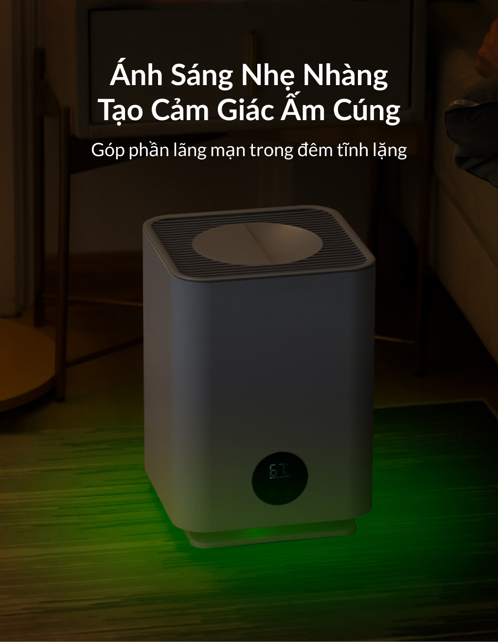 • Sản phẩm đa chức năng: tạo ẩm, khuếch tán tinh dầu và đèn ngủ. • Độ ẩm không khí rất quan trọng tới sức khỏe, đặc biệt là của trẻ nhỏ. Không khí khô