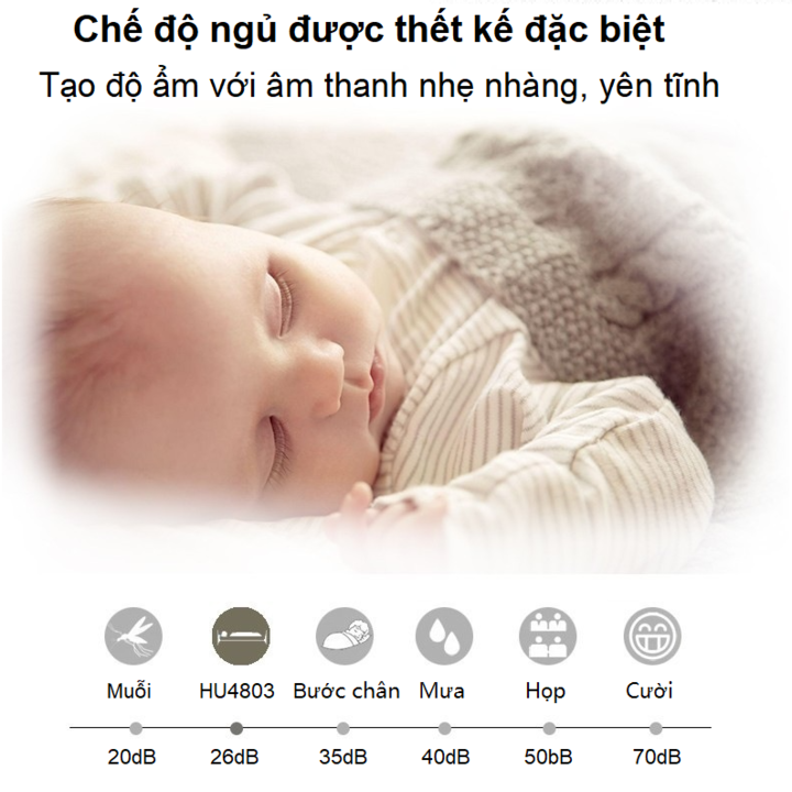 - Những hạt nước với kích cỡ nano nhờ công nghệ xông hơi NanoCloud sẽ giúp giảm đi 99% vi khuẩn trong phòng. -️ Không khí ẩm được phân bổ 360 độ đồng đều và khắp căn phòng. -️ Máy làm ẩm của Philips cho phép bạn lựa chọn độ ẩm từ 40, 50 và 60% cho sự thoải mái tối đa. -️ Chế độ tự động sử dụng cảm biến số để liên tục theo dõi độ ẩm. Nó điều chỉnh việc tạo độ ẩm lên và xuống khi cần thiết, đảm bảo độ ẩm luôn ở chế độ đã được chọn trước. - Đèn báo màu đỏ cho bạn biết bồn chứa nước cần được làm đầy. -️ Khi bồn chứa nước cạn, máy sẽ tự động tắt. -️ Chức năng hẹn giờ: 1/4/8 tiếng. Khi kết thúc thời gian hẹn giờ máy sẽ tự động tắt. -️ Chế độ ngủ ban đêm đảm bảo cho bạn không bị làm phiền bởi tiếng ồn của máy. Máy sẽ hoạt động với độ ồn tối thiểu, tất cả các đèn báo đều tắt ngoại trừ đèn báo tốc độ. -️ Có 3 chế độ lựa chọn tốc độ làm ẩm: thấp, bình thường và nhanh.