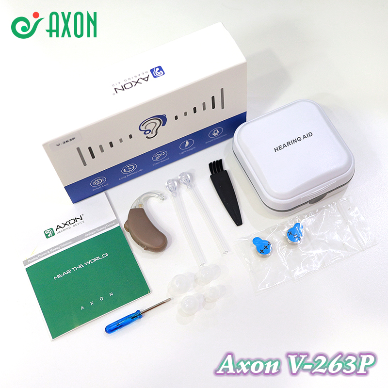 Máy trợ thính không dây Axon V-263P - Thiết bị trợ thính cho người già, người bị điếc nặng. Máy có tặng theo kèm hộp đựng máy và phụ kiện tiện lợi cho việc bảo quản máy và di chuyển Máy trợ thính Axon V-263P là lựa chọn lý tưởng cho những ai đang gặp vấn đề về thính lực. Với khả năng xử lý tạp âm tốt, tái tạo âm thanh chân thật, máy trợ thính Axon V-263P giúp người đeo nghe được mọi âm thanh sống động từ cuộc sống. Nhờ đó mà người đeo có thể tự tin trong giao tiếp hàng ngày. Máy trợ thính cho người bị điếc nặng Axon V-263P là một trợ thủ đắc lực cho người đang bị ù tai và suy giảm thính lực nặng. Hãy mua ngay một chiếc máy trợ thính Axon V-263P để nó trở thành bạn đồng hành tuyệt vời của bạn trong cuộc sống. Đặc điểm nổi bật của máy trợ thính không dây Axon V-263P: