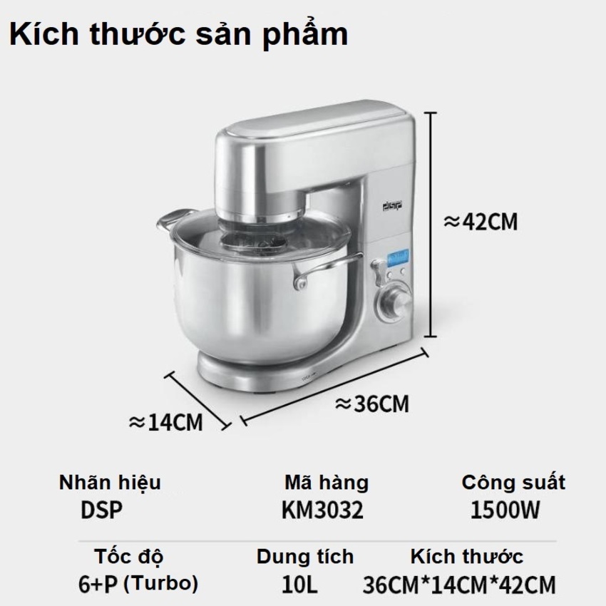 ✨Máy trộn bột, đánh trứng 10 lít cao cấp nhãn hiệu DSP KM3032 Công suất 1500W, Dung tích 10 lít - Bảo Hành Chính Hãng 12 Tháng