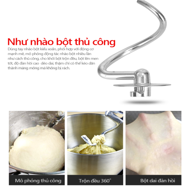 - Chân đế thiết kế đặc biệt có khả năng chống rung và trơn trượt khi máy hoạt động. Thông số kỹ thuật: – Dung tích: 5.5 lít – Số lượng bột đánh tối đa: 1.5kg – Điện áp: 220-240V 50/60Hz – Công suất: 1200W – Máy có 6 tốc độ đánh khác nhau – Kích thước máy: 38x30x14cm – Trọng lượng: 5kg – Bảo hành: 12 tháng Hướng dẫn sử dụng