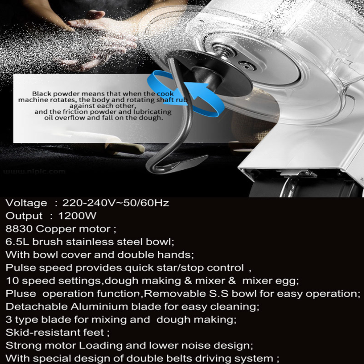 - Chân đế thiết kế đặc biệt có khả năng chống rung và trơn trượt khi máy hoạt động. Thông số kỹ thuật: – Dung tích: 6.5 lít – Điện áp: 220-240V 50/60Hz – Công suất: 1200W – Máy có 10 tốc độ đánh khác nhau – Kích thước máy: 51.53037.5cm – Trọng lượng: 7.4kg – Bảo hành: 12 tháng Hướng dẫn sử dụng