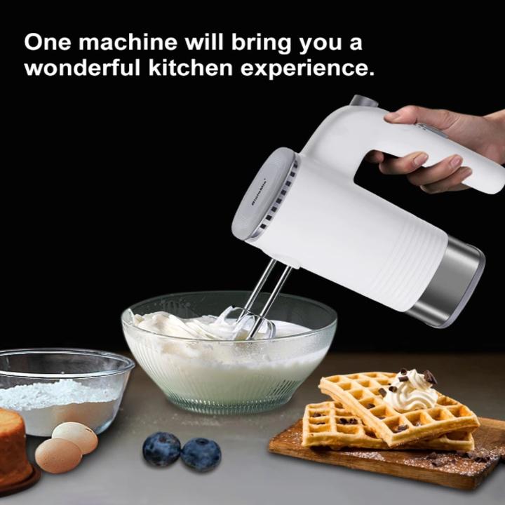 - Phụ kiện kèm theo: 1 x Máy trộn, 2 x Que đánh trứng, 2 x Que đánh bột, 1 x Que tạo bọt