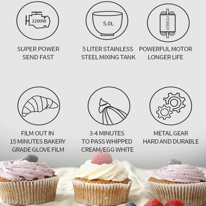 ✨Máy trộn bột và đánh trứng cao cấp nhãn hiệu DSP KM3007 công suất 1200W, dung tích 5 lít - Hàng Nhập Khẩu