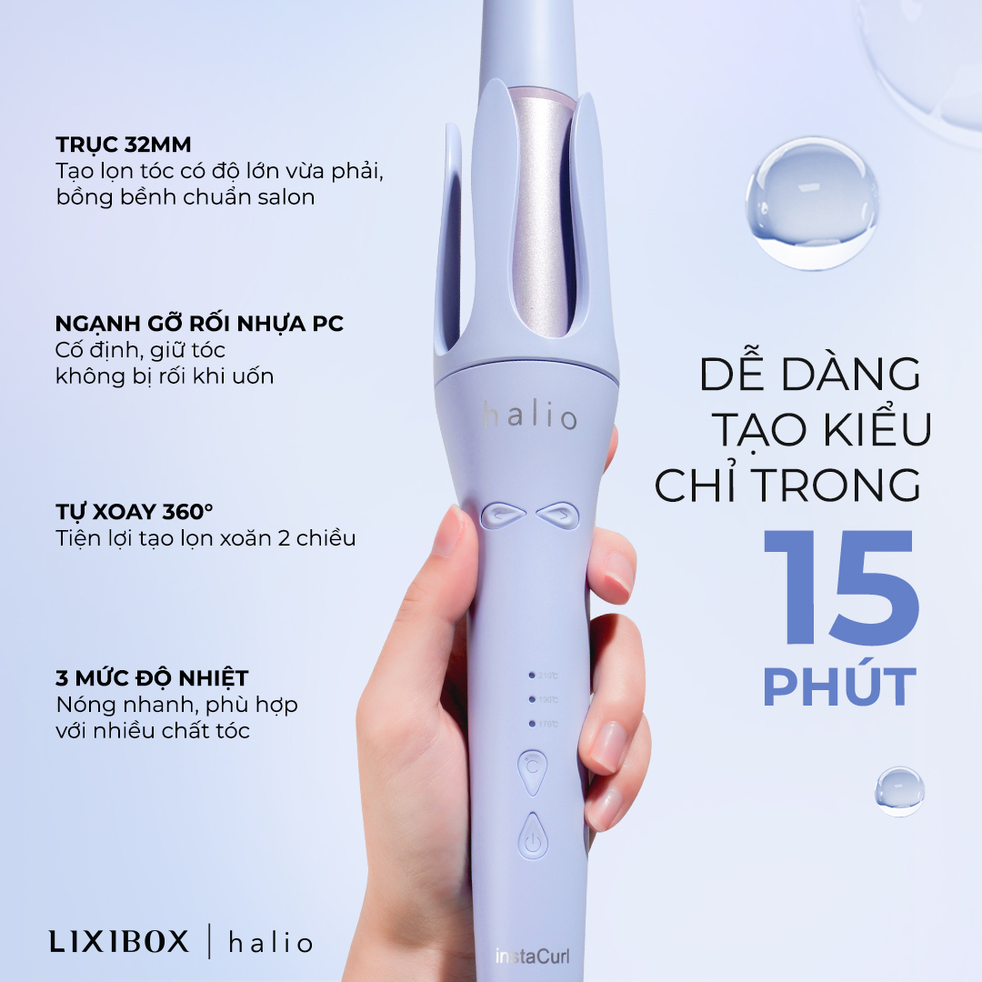 ✨Máy Uốn Tóc Halio instaCurl Premium Automatic Hair Styler Tự Động Xoay - Bóng Mượt x18 lần, Trục 32 mm