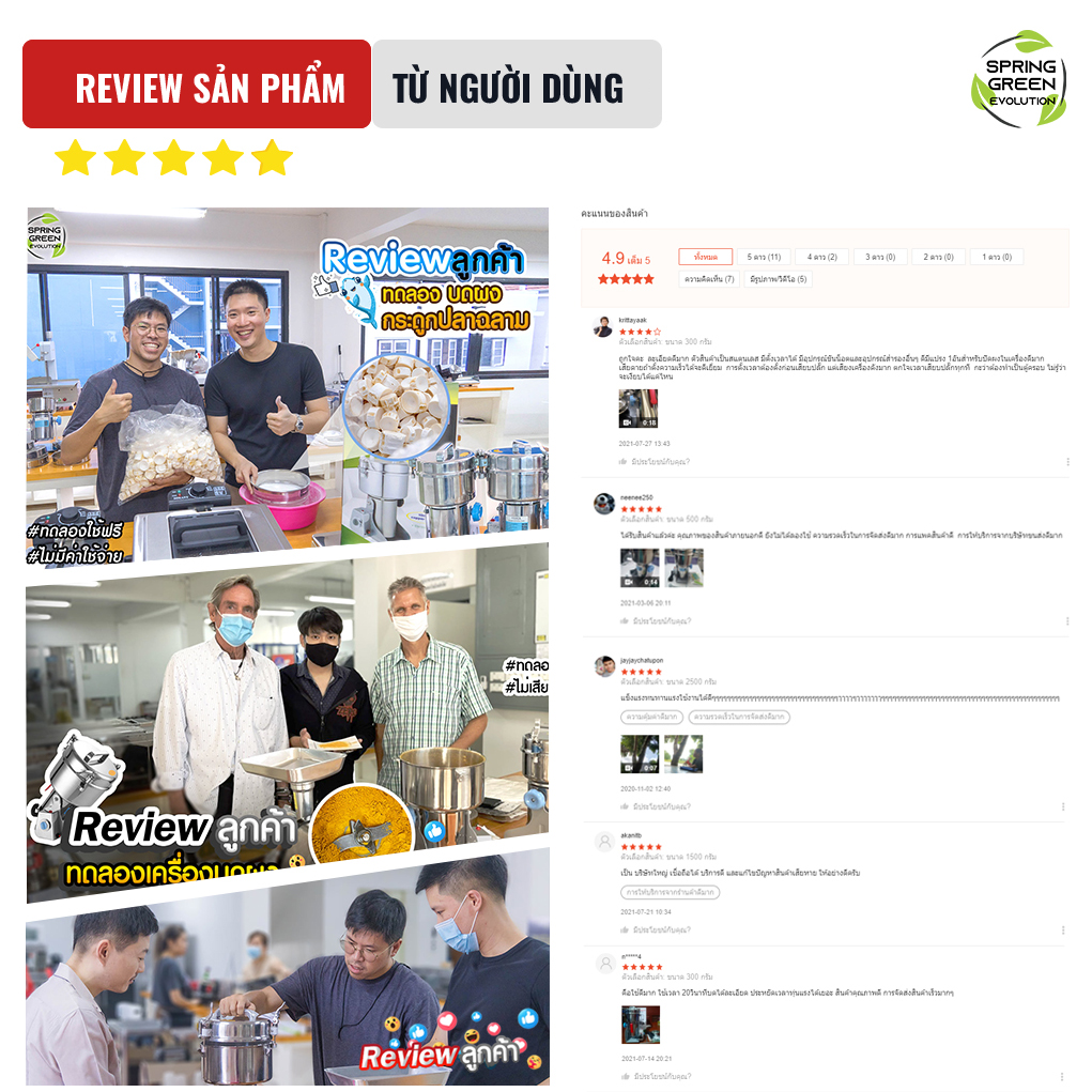 - Bảo hành chính hãng 2 năm MÁY XAY BỘT MỊN / MÁY XAY THẢO DƯỢC PG Máy xay bột mịn hay máy xay thảo dược PG hiệu quả cao đáp ứng nhu cầu chế biến tăng giá trị sản phẩm, có thể xay nhiều loại thảo dược, gia vị, thuốc hoặc hóa chất thành bột mịn dễ dàng. Động cơ mạnh mẽ đạt tiêu chuẩn có thể tạo ra năng suất lớn trong 5 – 10 giây nên phù hợp với các mô hình kinh doanh từ nhỏ cho đến cấp độ công nghiệp. THÔNG SÓ VÀ KÍCH THƯỚC MÁY Có 6 cỡ máy cho bạn lựa chọn, từ 150 gram/lần – 4,5 kg/lần ĐẶC ĐIỂM CỦA MÁY XAY BỘT MỊN PG ĐỘNG CƠ BẰNG ĐỒNG NGUYÊN CHẤT 100% Động cơ là trái tim của máy xay thảo dược. Động cơ mạnh mẽ 4.500W có thể xay được nhiều loại vật liệu khác nhau một cách nhanh chóng. Tiết kiệm năng lượng và thời gian khi làm việc. Có thể sử dụng liên tục TIẾT KIỆM THỜI GIAN Xay nhanh chóng, không cần chờ lâu. Chỉ cần 15 giây nghiền nguyên liệu thành bột mịn MÁY XAY BỘT MỊN XAY ĐƯỢC NHỮNG GÌ? Máy xay bột thảo dược hiệu quả cao đáp ứng nhu cầu xay nhanh, đều và nhuyễn. Giúp tăng giá trị sản phẩm. Dễ dàng nghiền nhiều loại thảo mộc, gia vị, thuốc hoặc hóa chất thành bột mịn. ĐI KÈM LÀ LƯỠI DAO KÉP Lưỡi dao kép quay với tốc độ 32.000 vòng/phút, biến thành bột mịn trong chớp mắt, đáp ứng mọi nhu cầu sử dụng. Xay mịn theo ý muốn MÁY CÓ THỂ XOAY 270 ĐỘ Máy có thể xoay 270 độ, việc rót vào cối chứa rất dễ dàng và thuận tiện. ĐẶT THỜI GIAN NHƯ MONG MUỐN Xoay núm để cài đặt thời gian làm việc từ 0 – 5 phút. Bạn chỉ nên nhấn và giữ công tắc trong 7-8 giây và nghỉ trong 2-3 giây. Lặp lại chu trình này sẽ khiến nguyên liệu thô rất mịn. CÓ HỆ THỐNG AN TOÀN Có hệ thống nắp vặn bằng vít. chặt chẽ để đảm bảo an toàn TIÊU CHUẨN FOOD GRADE Chất lượng sản phẩm đảm bảo đạt tiêu chuẩn Máy được làm từ inox 304 chắc chắn, bền bỉ, không mềm, không có cặn trong nguyên liệu. Có thể sử dụng lâu dài GALLERY +++ LƯU Ý: MÁY PG-150 QUÀ TẶNG KÈM THEO LÀ BỘ DAO, CHỔI THAN ( KHÔNG KÈM RAY BỘT) NHƯ CÁC DÒNG SIZE LỚN