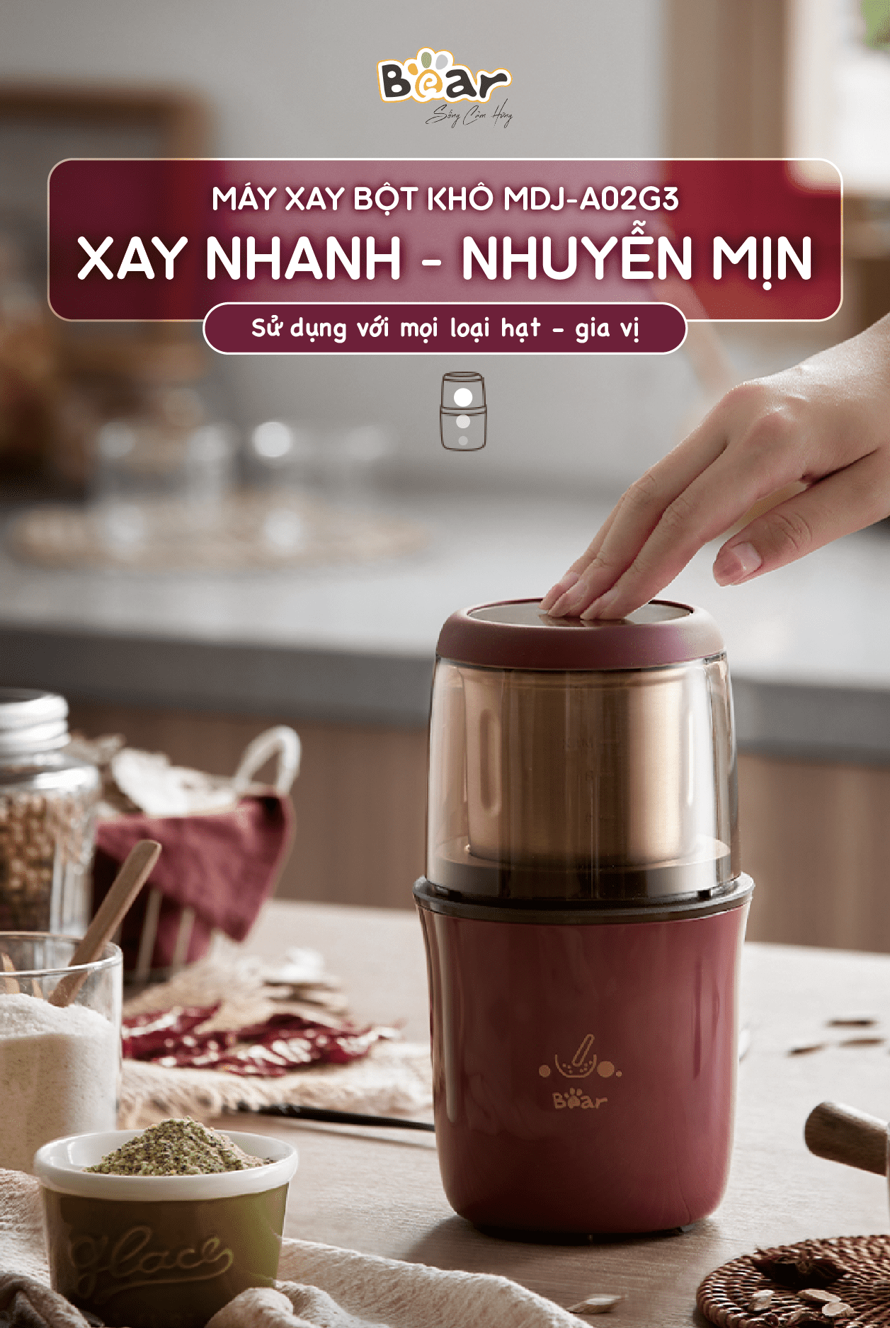 Review Máy Xay Bột Khô Đa Năng Bear Xay Cà Phê, Hạt Tiêu, Ngũ Cốc Công Suất Lớn MDJ-A02G3
