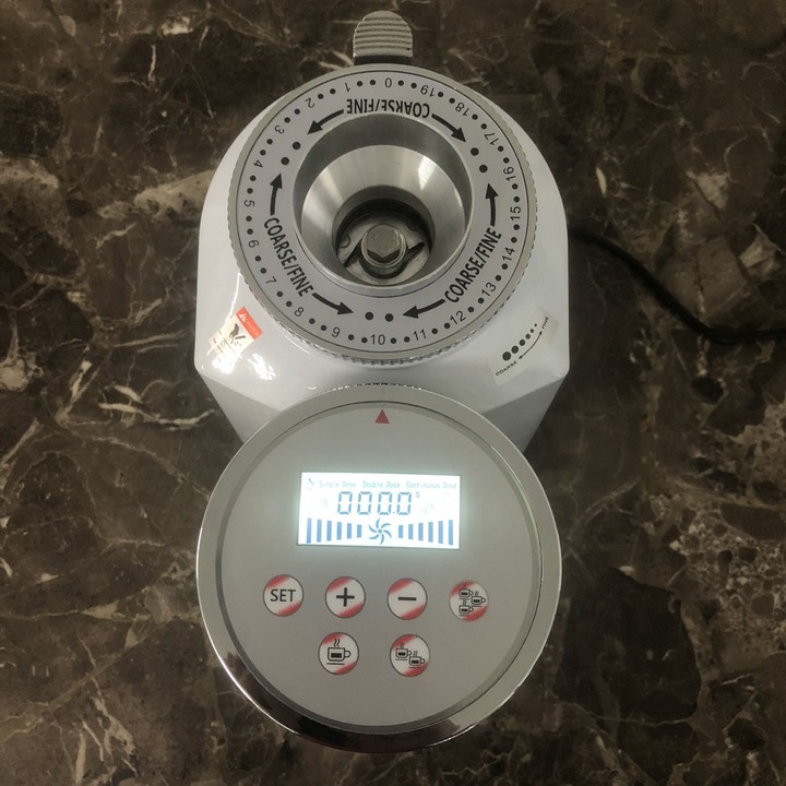 - Máy có bảng điều khiển cơ tích hợp màn hình LCD dễ thao tác. Chỉ bằng một cái chạm nhẹ bạn có thể tùy chỉnh định lượng cafe cho mỗi ly một cách chính xác. Màn hình có hiển thị các thông số một cách rõ ràng. Chất lượng hạt cà phê xay ra đều và mịn nhất
