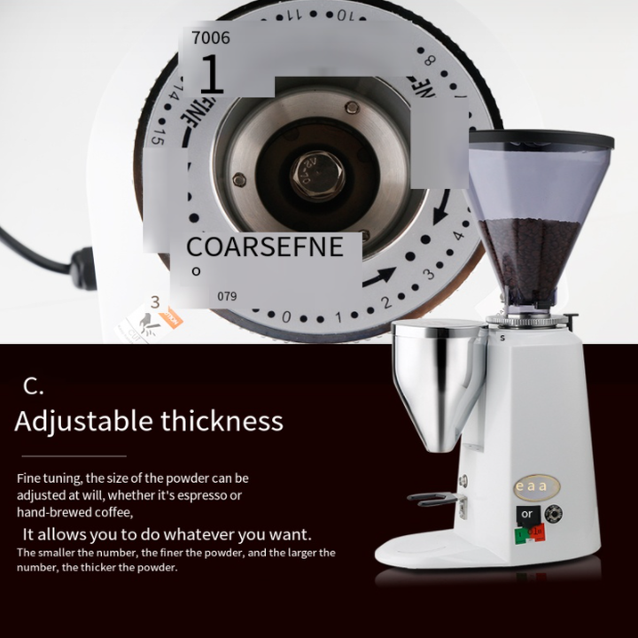 - Mỗi loại hạt cà phê sẽ có yêu cầu về độ mịn khi pha máy khác nhau nhằm giữ đúng hương vị ban đầu của nó. Nếu tiêu chí này không được đáp ứng, hương vị của những ly cà phê tới tay thực khách sẽ hoàn toàn bị biến đổi, quá đắng hoặc quá chát. Thông số kỹ thuật sản phẩm