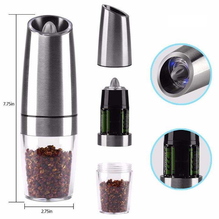 Máy Xay Tiêu Cầm Tay Tự Động Chạy Pin, Hạt Gia Vị Có Đèn Led, Lõi Mài Gốm Ceramic Cao Cấp, Tiện Dụng