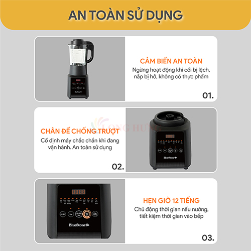 - Cảm biến an toàn: ngừng hoạt động khi cối bị lệch, nắp bị hở không có thực phẩm