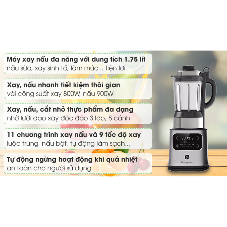 Máy Xay Nấu Đa Năng Kangaroo KG175HB1 là máy xay sinh tố đa năng cao cấp, tích hợp chức năng đun sôi tự động. Với khả năng vừa xay vừa gia nhiệt làm nóng có thể chế biến được nhiều món ăn với 1 chiếc máy duy nhất.