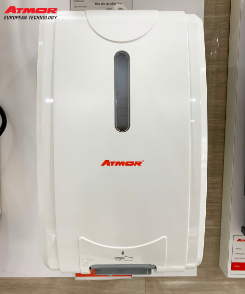 - Giới thiệu máy xịt cồn cảm ứng treo tường AT-007R (Dùng điện) Máy xịt cồn cảm ứng tự động (treo tường) ATMOR – AT-007R là dòng sản phẩm thiết bị cảm ứng chuyên dụng cho các khu công cộng như: Khu công nghiệp, bệnh viện, trung tâm y tế, công ty sản xuất thực phẩm, các văn phòng công ty, trung tâm mua sắm lớn,… Sản phẩm luôn mang lại sự an toàn nhất định với công nghệ cảm ứng không cần chạm tay vào máy để hạn chế lây nhiễm những bệnh truyền nhiễm. THÔNG SỐ CHI TIẾT CỦA MÁY XỊT CỒN CẢM ỨNG Hãng sản xuất ATMOR (Thái Lan) Tên sản phẩm Máy xịt cồn cảm ứng Kích thước AT-007R Nguồn điện AC 220V Dung tích 2000ml Hệ thống phun sương vừa đủ 0.5~6ml Chất liệu Nhựa ABS Màu sắc Màu trắng Bảo hành 12 tháng Vì sao nên chọn máy xịt cồn cảm ứng treo tường AT-007R (Dùng điện)?