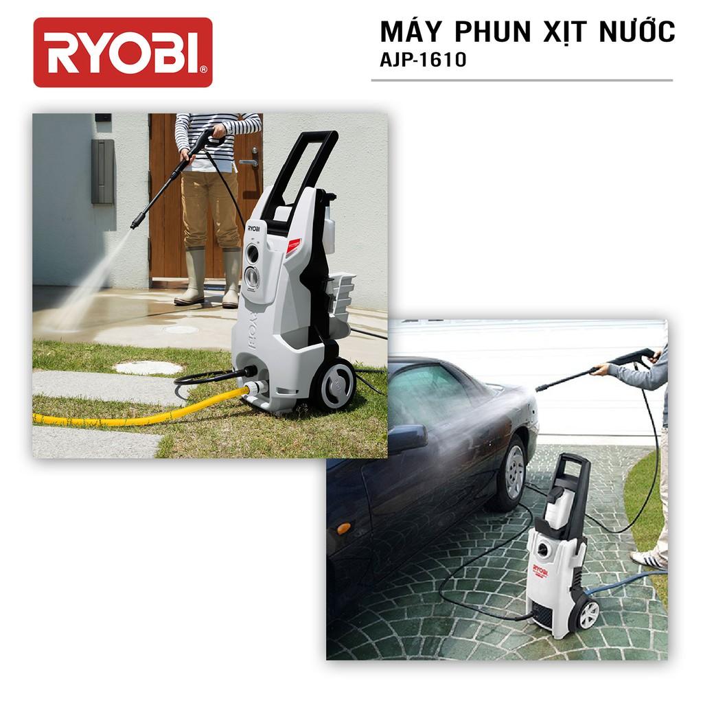 - Máy phun xịt nước cầm tay RYOBI – AJP-1610 với áp lực lên tới 130 bar được sử dụng trong đời sống hàng ngày để làm sạch xe máy và ô- tô. Thiết bị được đánh giá có khả năng làm sạch cao và hiệu quả với động cơ 1800W. Dòng máy phun rửa áp lực cao sở hữu nhiều cải tiến tích cực giúp người dùng dễ dàng sản phẩm và ưa chuộng sản phẩm hơn.