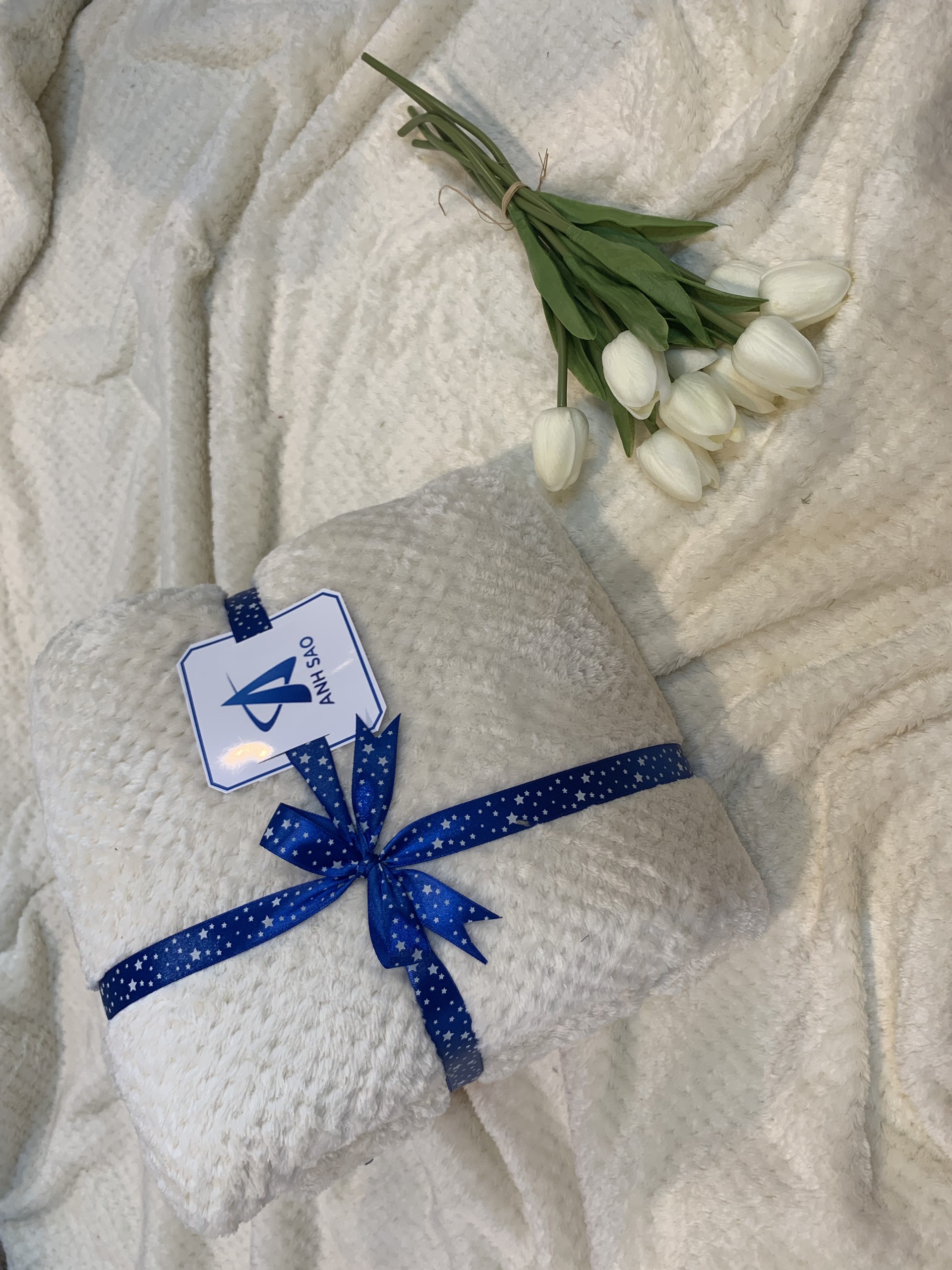Đường may trau chuốt tỉ mỉ, sợi lông mềm mịn tay, tạo cảm giác dễ chịu khi đắp.