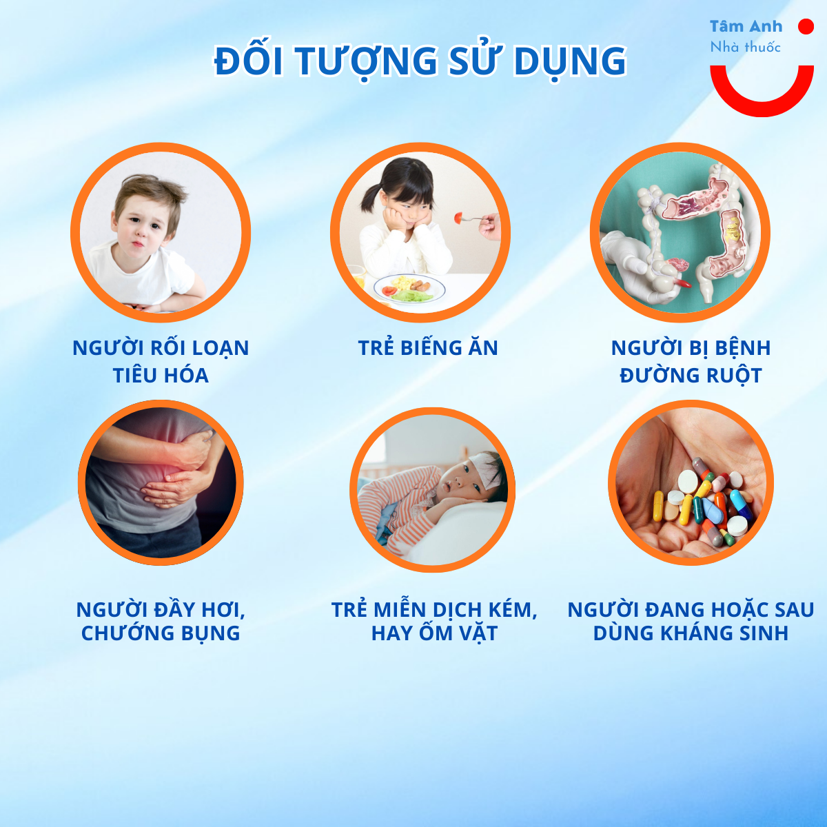 - Lắc đều ống trước khi dùng. Uống trước ăn 30 phút, sau ăn và sau uống kháng sinh 2h. Liều dùng: