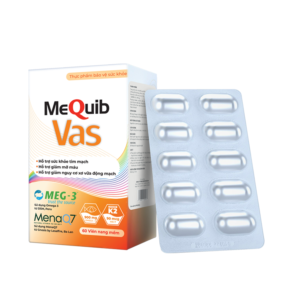 MEQUIB VAS – Hỗ Trợ Ngăn Lão Hóa Tim Mạch, Ngừa Xơ Vữa Động Mạch MeQuib VAS là sự kết hợp các thành phần có lợi cho tim mạch với đa cơ chế phòng ngừa
