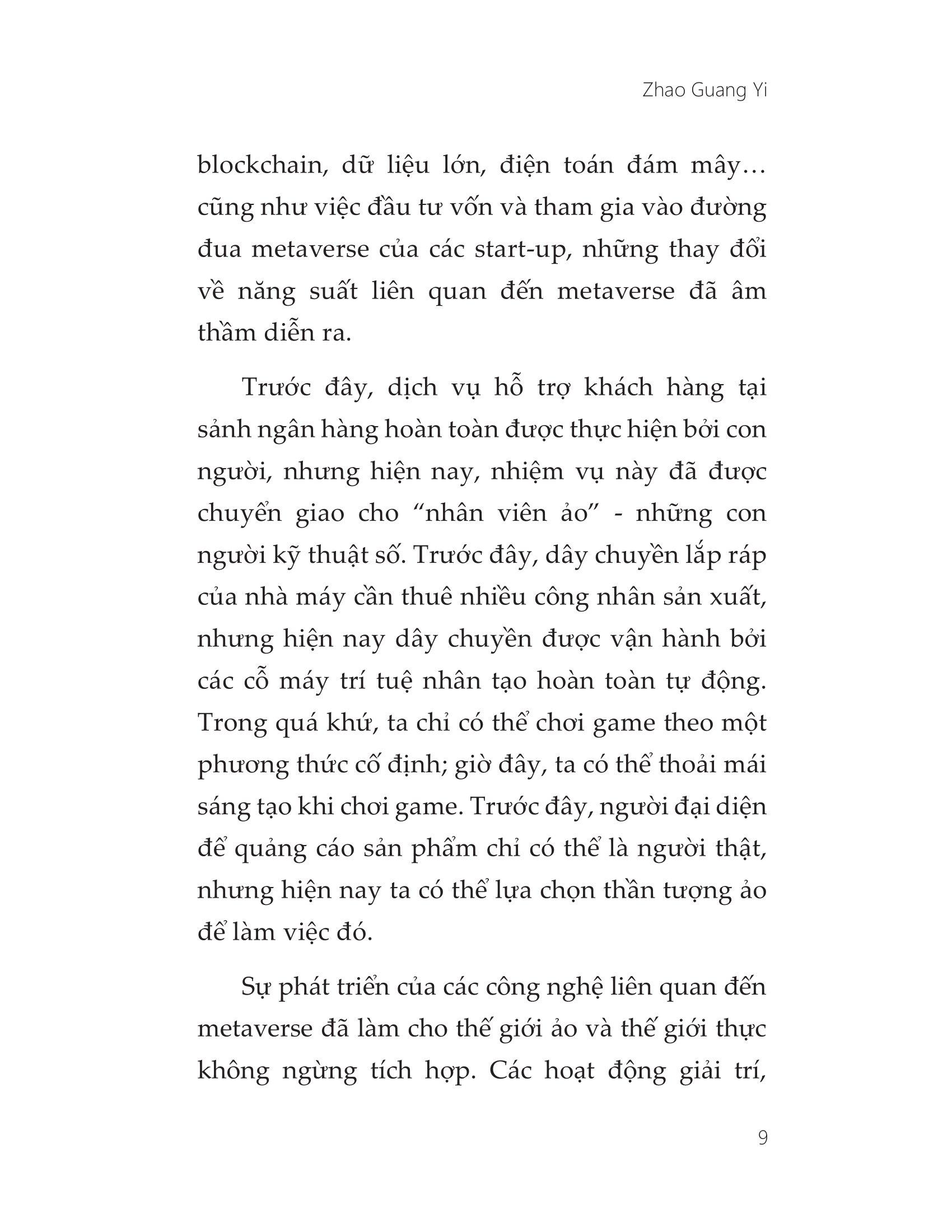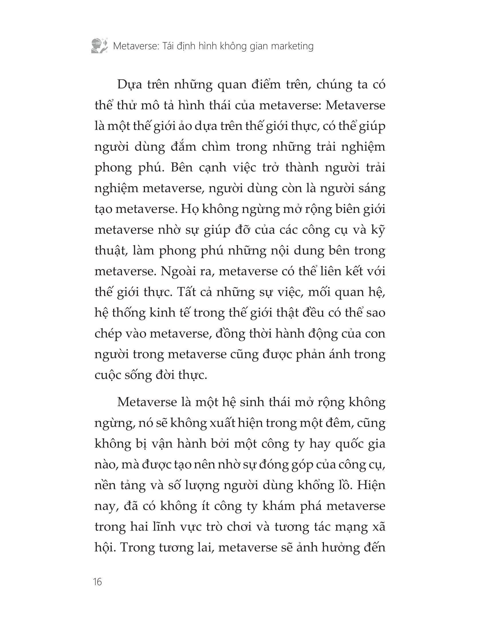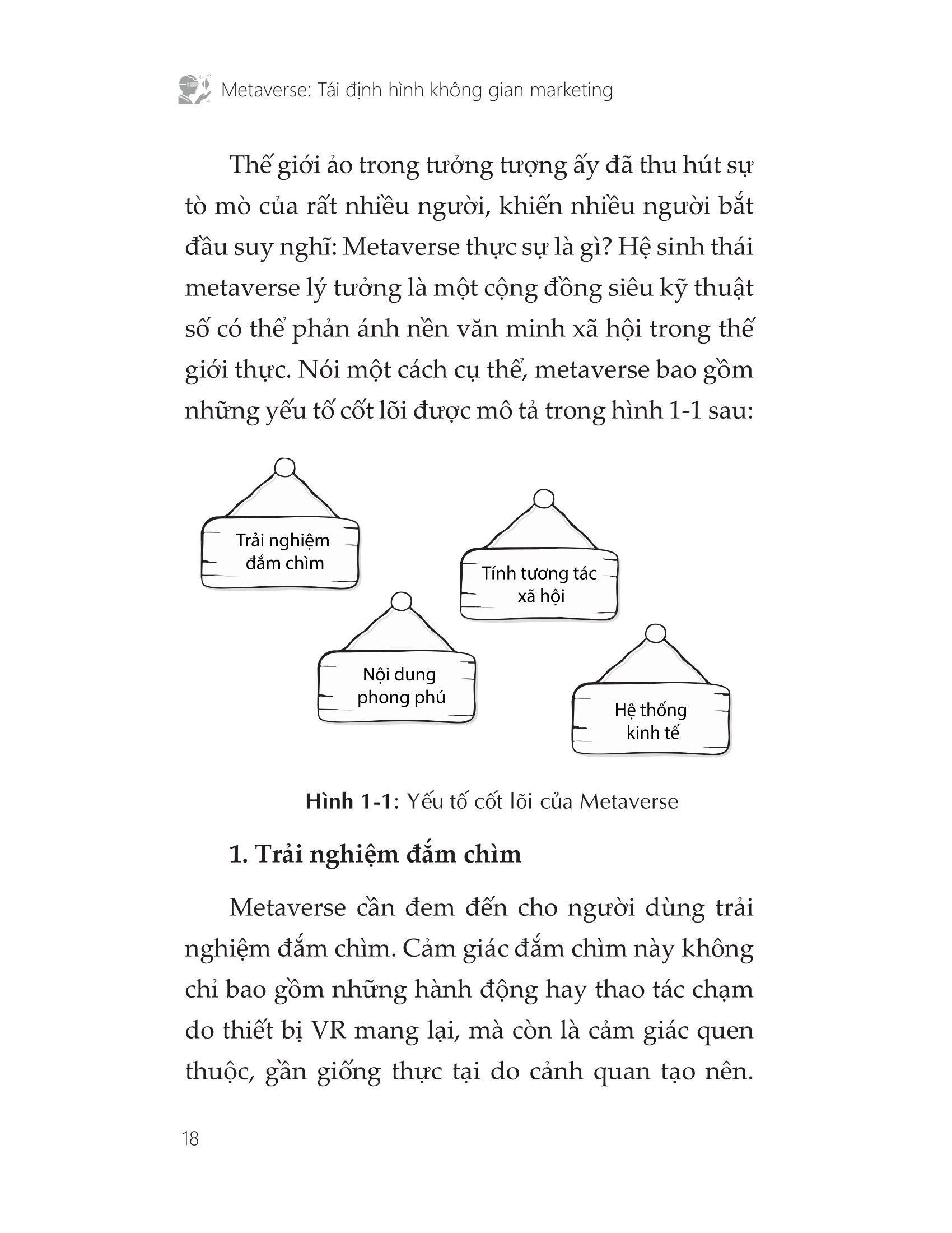 Nhiều công ty và các start-up đau đầu vì không biết làm thế nào để tham gia vào lĩnh vực metaverse do họ không có đủ vốn và tiềm lực công nghệ. Để khắc phục những vấn đề này, cuốn sách trên tay bạn sẽ mô tả toàn diện tư duy triển khai metaverse, giới thiệu những nội dung có thể khai thác cũng như cách kết hợp metaverse vào hoạt động kinh doanh. Ngoài việc cung cấp lý thuyết về metaverse, cuốn sách này còn thảo luận về các trường hợp thực tế của nhiều công ty và phân tích các cơ hội tiềm năng trong metaverse. Đây là một cuốn sách mang tính định hướng, có thể giúp các công ty, start-up hiểu rõ hơn về con đường phía trước.