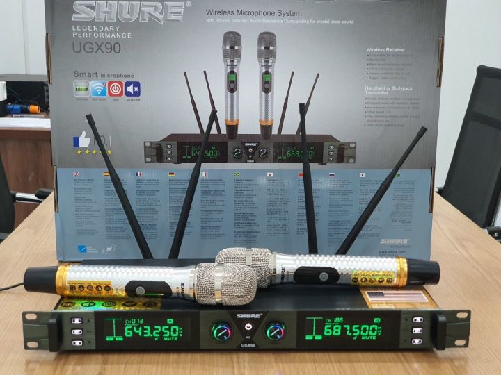 Micro Không Dây Shure UGX90 Cao Cấp, Micro Karaoke Chống Hú Cực Tốt Hàng Chuẩn 4 Râu Tự Ngắt, Bắt Sóng Cực Khỏe Tự Động Dò Sóng Sạch, Chất Âm Trong Trẻo Dày Dặn