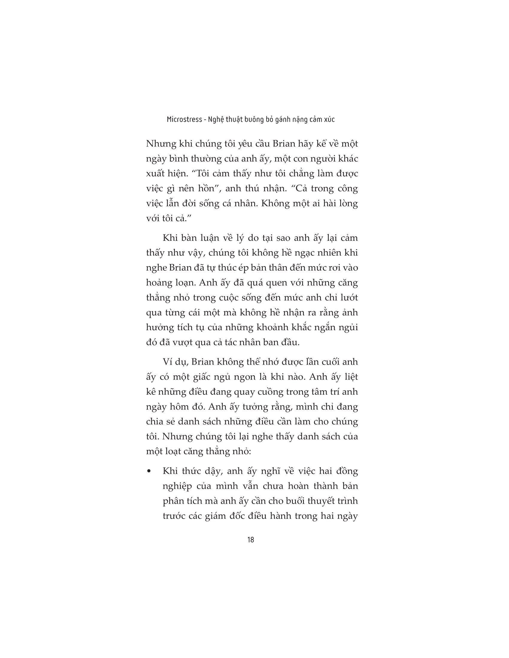 Trong Microstress – Nghệ thuật buông bỏ gánh nặng cảm xúc, Rob Cross và Karen Dillon giải thích những cơ sở khoa học đằng sau hiện tượng này, đồng thời mang đến những phương pháp xây dựng tính kiên cường trước những căng thẳng vi mô và cuối cùng là tìm ra mục đích giúp bạn thoát khỏi thế lực xâm lấn âm thầm đang cướp đi cuộc đời bạn.