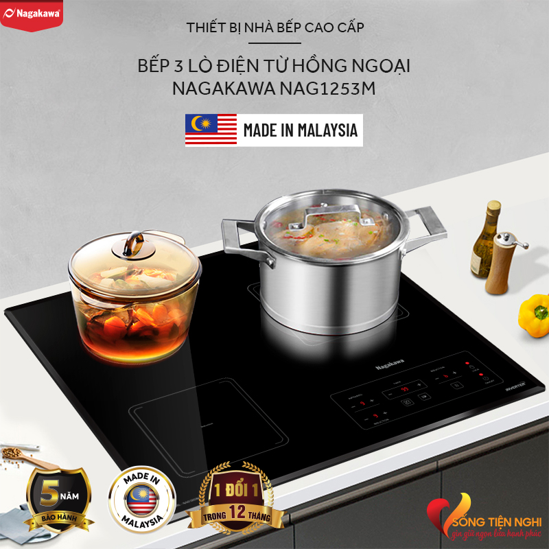 ✨Miễn phí giao lắp toàn quốc - Bếp 3 lò điện từ hồng ngoại Inverter Nagakawa NAG1253M (59 cm) Premium - Bảo hành 5 năm - Made in Malaysia - Hàng Chính Hãng