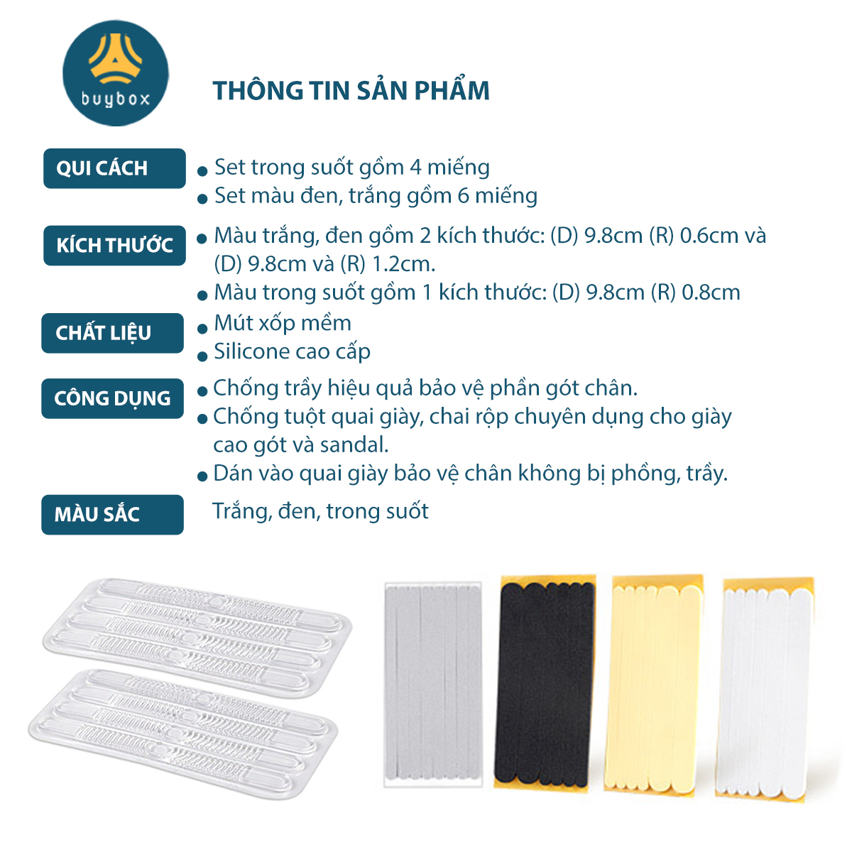 ✨Miếng dán chống trầy gót chuyên dùng cho sandal, giày cao gót chất liệu EVA, silicone cao cấp - Buybox - BBPK282