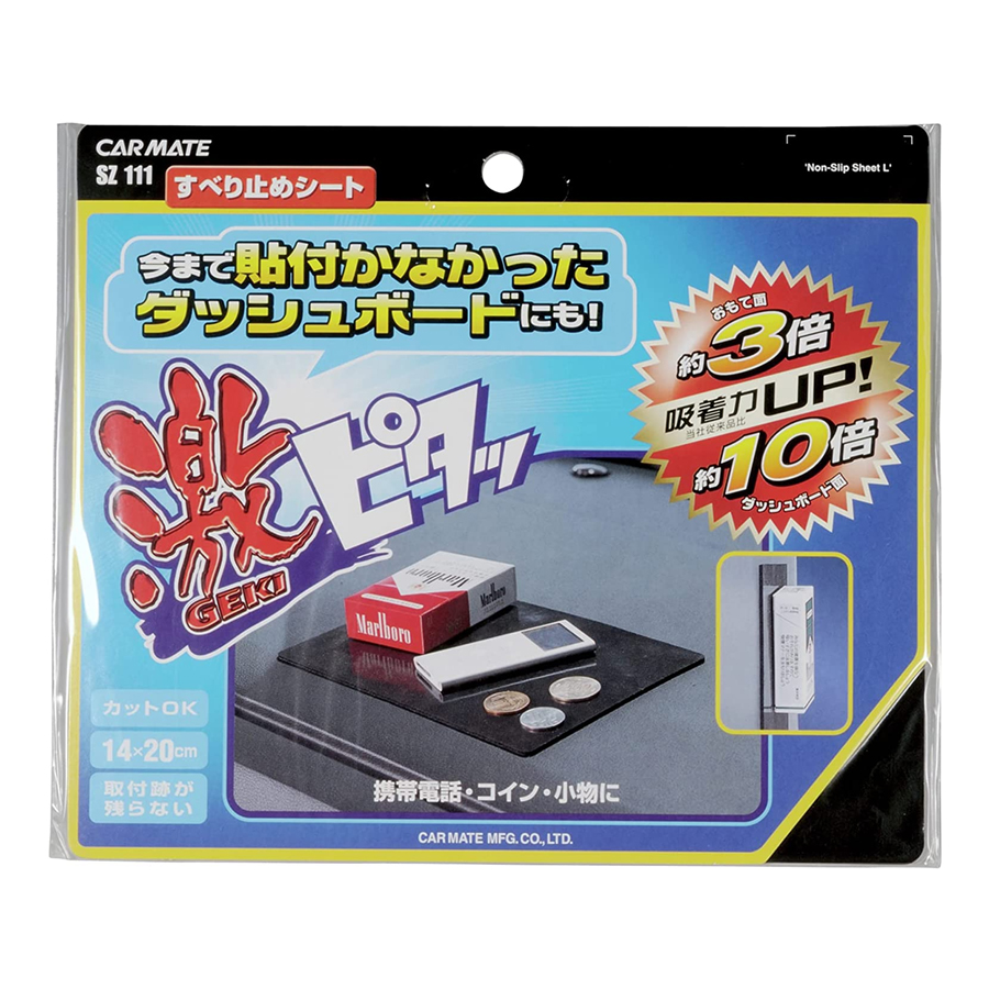 - Đặc biệt có thể cắt lại để phù hợp với vị trí sử dụng. Hướng dẫn sử dụng và bảo quản Miếng dán chống trượt trên ô tô CARMATE SZ111 size L màu đen Hướng dẫn sử dụng: Lau sạch vị trí cần dán bằng nước hoặc chất tẩy rửa trung tính. Bóc lớp màng trong suốt. Bóc tấm bảo vệ và dán vào bề mặt taplo hoặc bảng điều khiển. Dán xong, để yên cố định trong ít nhất 4 giờ để sản phẩm hít vào bề mặt. Chú ý: Không được dán lên túi khí hoặc nơi cản trở túi khí. Không đặt những vật có bề mặt xuống cấp hoặc gây bong tróc lên sản phẩm