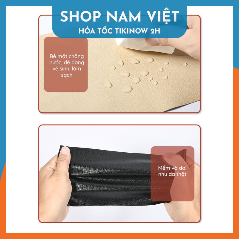 Mua tại TiktokĐóng gói: 1 miếng da kích thước tùy chọn ️ Tính năng Dễ dàng vá lại chỗ rách trên đồ da như ghế da, yên với keo siêu dính. Sử dụng cho đồ da thuộc, đồ giả da, Bề mặt băng keo có vân da giống thật, chống nước, chống ẩm. ️ Thông số Kích thước: xem ở lựa chọn đặt hàng. Chất liệu: giả da (da PU) Độ dày: 1mm ️ Cách sử dụng: Làm sạch bề mặt trước khi dán. Dán và ép chặt đảm bảo không bị nhăn hay cong mép.