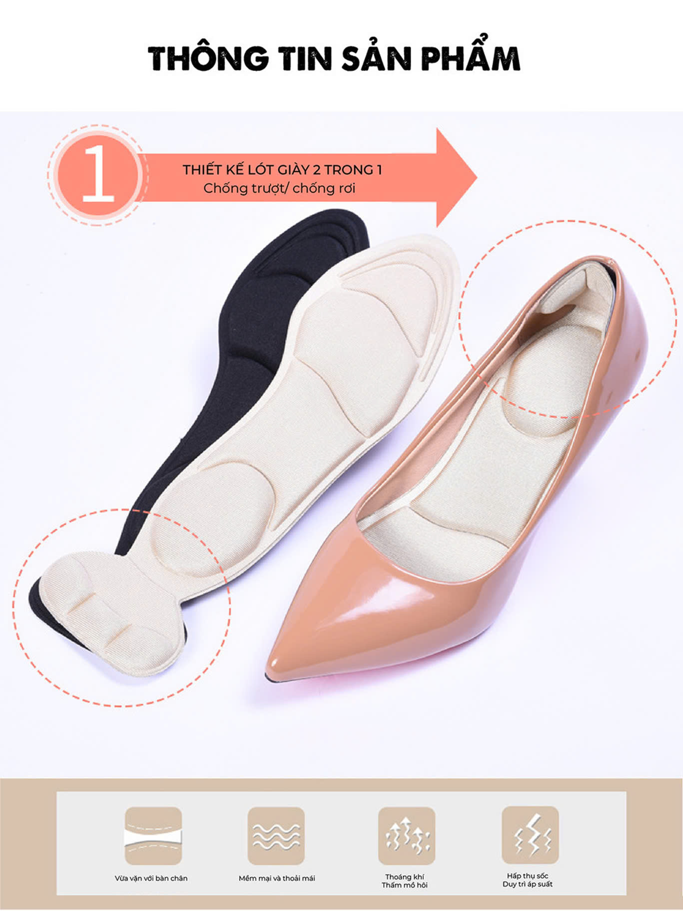 Cặp lót giày cao gót massage êm chân nguyên bàn THÔNG TIN SẢN PHẨM