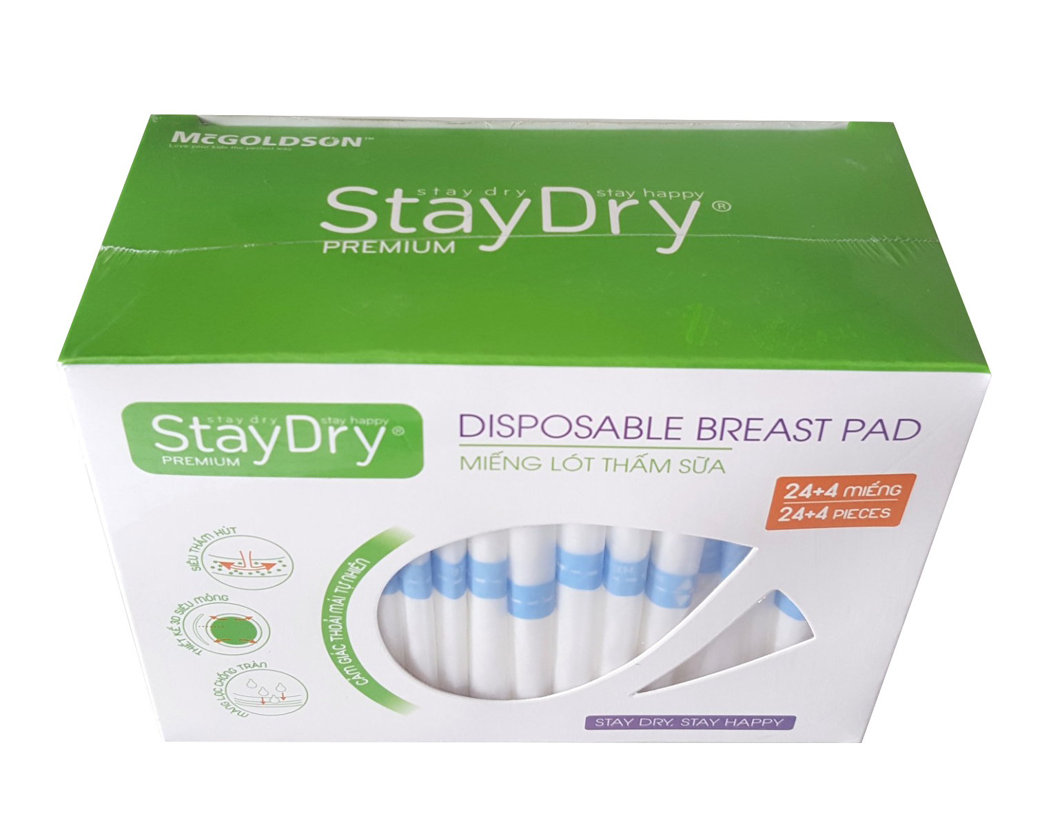 Lót thấm sữa Staydry được làm bằng chất liệu mềm mại, thấm hút nhanh và không gây tràn tạo cho bạn cảm giác luôn được thoải mái khi sử dụng, và bảo đảm an toàn cho bé. Miếng thấm sữa Staydry được thiết kế viền 3D độc đáo ôm sát, thoải mái, mềm mại