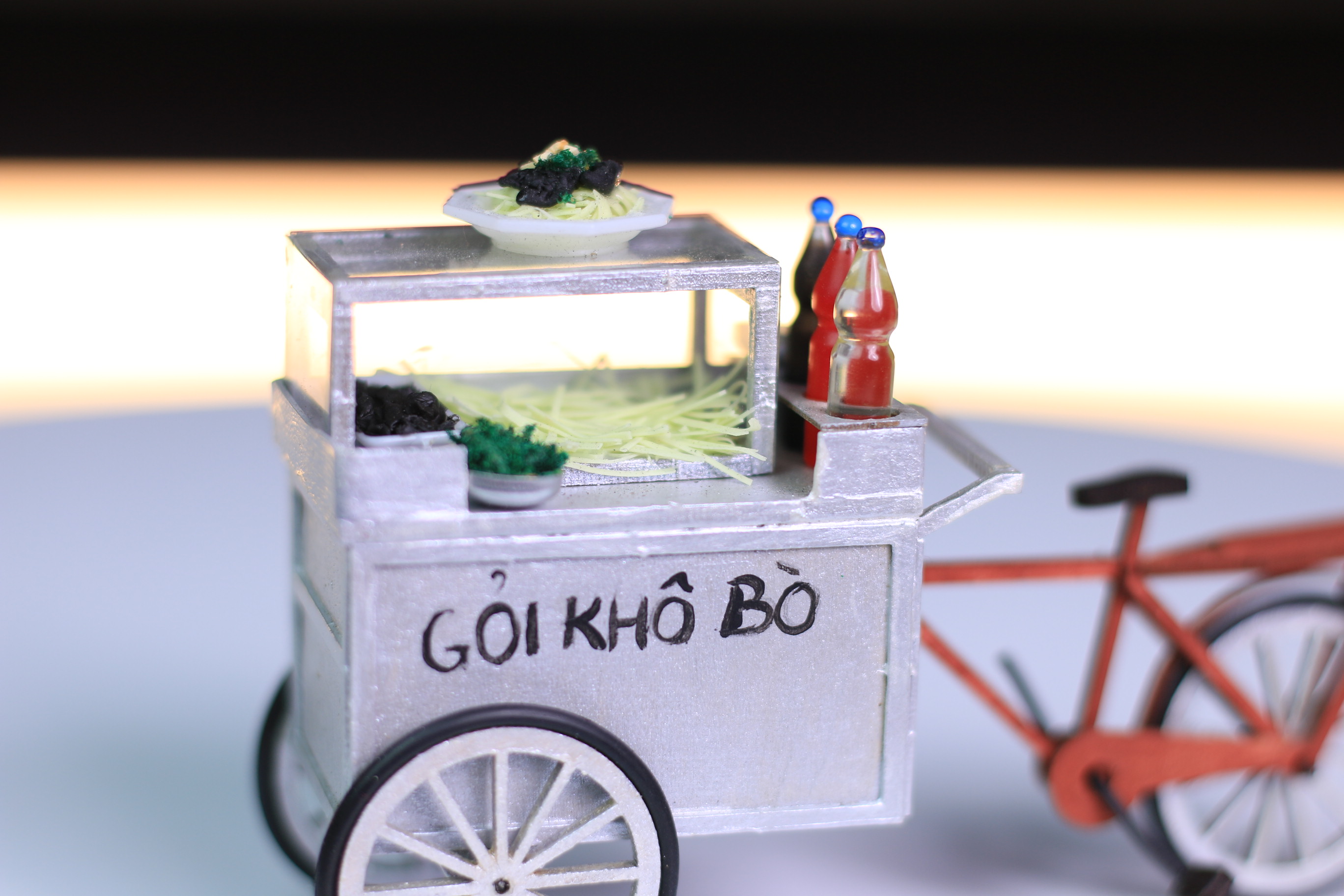 Mô Hình Xe Hàng Rong Thu Nhỏ Bằng Gỗ Ở Sài Gòn - Xe Gỏi Khô Bò - HR15 KHÁCH LƯU Ý - SẢN PHẨM TỰ SƠN VÀ LẮP RÁP - SẢN PHẨM CHƯA BAO GỒM KEO