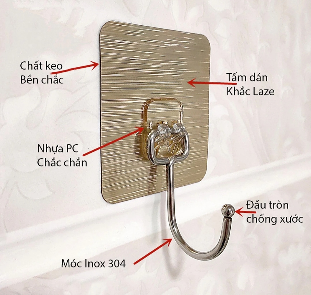 Đóng gói: 01 miếng dán + 01 móc treo inox