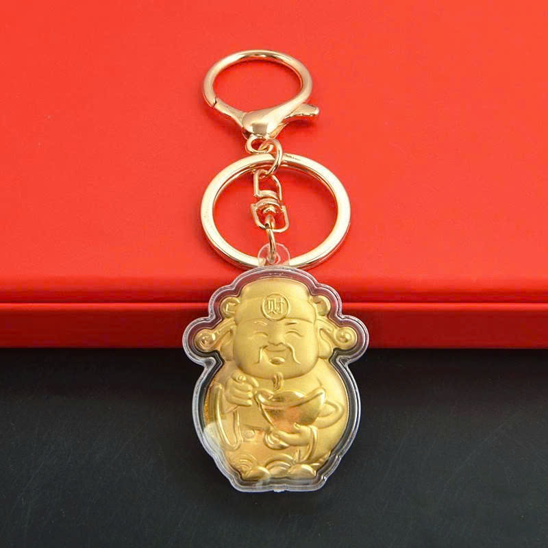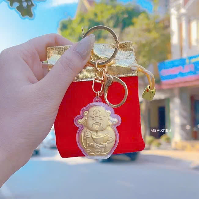 ✨Móc Khóa Thần Tài Mạ Vàng Kèm Túi Nhung Đỏ May Mắn Tài Lộc