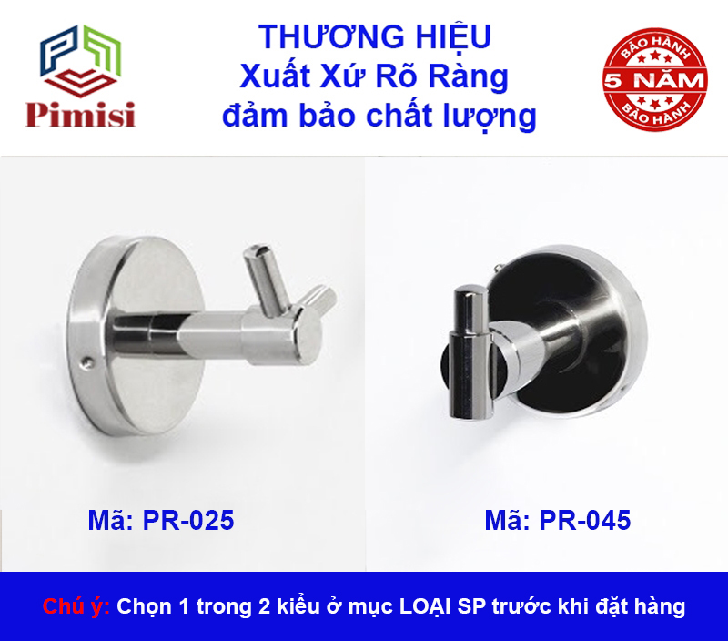 Móc treo đơn Pimisi PR-045 inox 304 dán tường