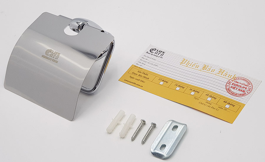 - Loại giấy phù hợp : các cuộn giấy tròn cho gia đình CHẤT LIỆU Hộp được thiết kế với nắp che từ Inox SUS 304 nguyên chất mạ Crome sáng bóng, dày dặn và chắc chắn, không han rỉ theo thời gian. Trụ móc được làm từ Metal mạ Crome sáng bóng. Hộp được thiết kế với nắp che, có thể chống nước văng bắn làm ướt giấy bên trong hộp. Nắp che có kể nâng cao để đưa cuộn giấy thay thế 1 cách dễ dàng. Trụ giữ giấy được thiết kế với dạng vuốt công từng tầng. Chi tiết mặt trong, mặt ngoài, bát gắn và thanh treo của sản phẩm : Bát định vị bằng ốc lục giác chắc chắn, dễ lắp đặt. Bát gắn trụ được định vị bằng ốc lục giác, và gắn lên tường bằng 2 ốc vít cùng tackle đi kèm Trục giữ giấy được thiết kế với thanh Inox lớn cứng cáp dễ xoay chuyển SẢN PHẨM SANG TRỌNG ĐÓNG GÓI SẢN PHẨM Sản phẩm chất lượng cao, mang đến sự sang trọng và đẳng cấp cho phòng tắm nhà bạn. CHẤT LƯỢNG HÀNG ĐẦU Thương hiệu Eurolife Việt Nam là một thương hiệu uy tín hàng đầu trên thị trường Việt Nam với 12 năm kinh nghiệm Các sản phẩm Eurolife đạt nhiều chứng chỉ uy tín trong nước như :