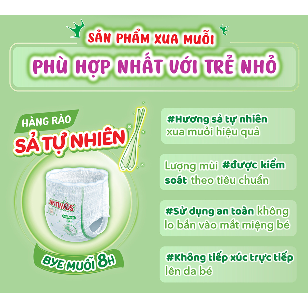 [MỚI] Tã Quần Xua Muỗi Bobby Antimos – Chỉ cần mặc tã, xua muỗi tránh xa – Hàng rào Sả tự nhiên ĐẶC ĐIỂM NỔI BẬT