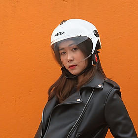 Mũ bảo hiểm nam nữ nửa đầu Sunda 137A cao cấp có kính ẩn màu trắng bóngMũ bảo hiểm nam nữ nửa đầu Sunda 137A cao cấp có kính ẩn màu trắng bóng