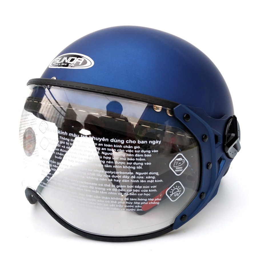 Mũ bảo hiểm nửa đầu có kính Sunda 180B trơn là phụ kiện không thể thiếu khi đi xe mô tô, xe máy, mang lại sự an toàn và phong cách thời trang cho người sử